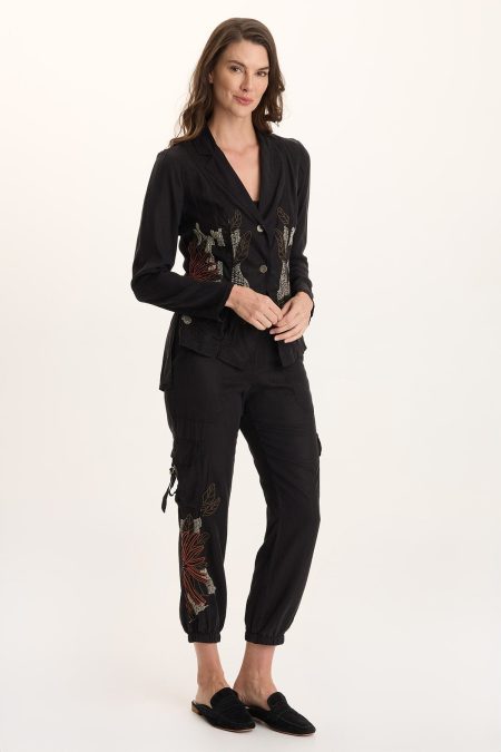 143.00$A pull-on faux fly style with tabbed cargo pockets on either side, deep hip pockets, and traditional jogger banding at the cuff, Darri gets an unexpected artisan touch with contrasting floral embroidery detail on the leg. Soft Twill: 100% Tencel Terry Waistband: 96/4 Rayon/Spandex Inseam (~in): ~28″ Front Rise (~in):…