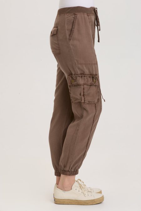 135.00$Cinched adjustable leg openings and voluminous tabbed pockets throughout add adventure to this tapered poplin crop. Brio Poplin: 97/3 Cotton/Spandex 2×1 Rib Waistband: 95/5 Cotton/Spandex Inseam: ~29″ Front Rise: ~11″ Back Rise: ~17″ Waistband: Drawstring Color Description: Rich Cocoa Brown Preshrunk Machine washable Imported MODEL Hunter is wearing size XS…
