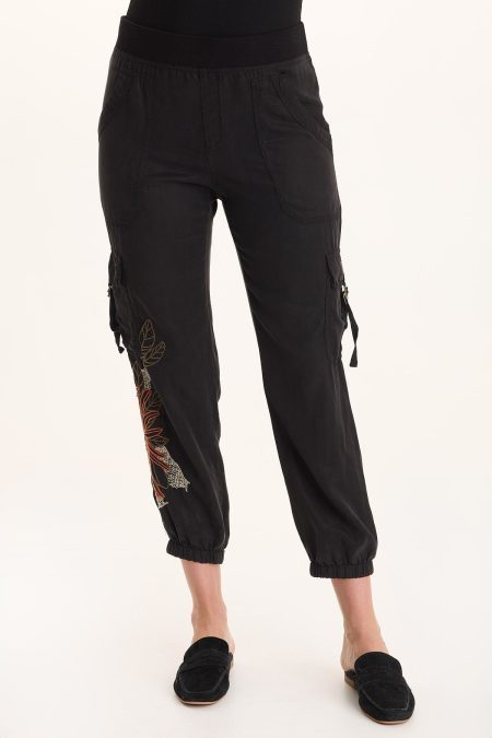 A pull-on faux fly style with tabbed cargo pockets on either side, deep hip pockets, and traditional jogger banding at the cuff, Darri gets an unexpected artisan touch with contrasting floral embroidery detail on the leg. Soft Twill: 100% Tencel Terry Waistband: 96/4 Rayon/Spandex Inseam (~in): ~28″ Front Rise (~in):…
